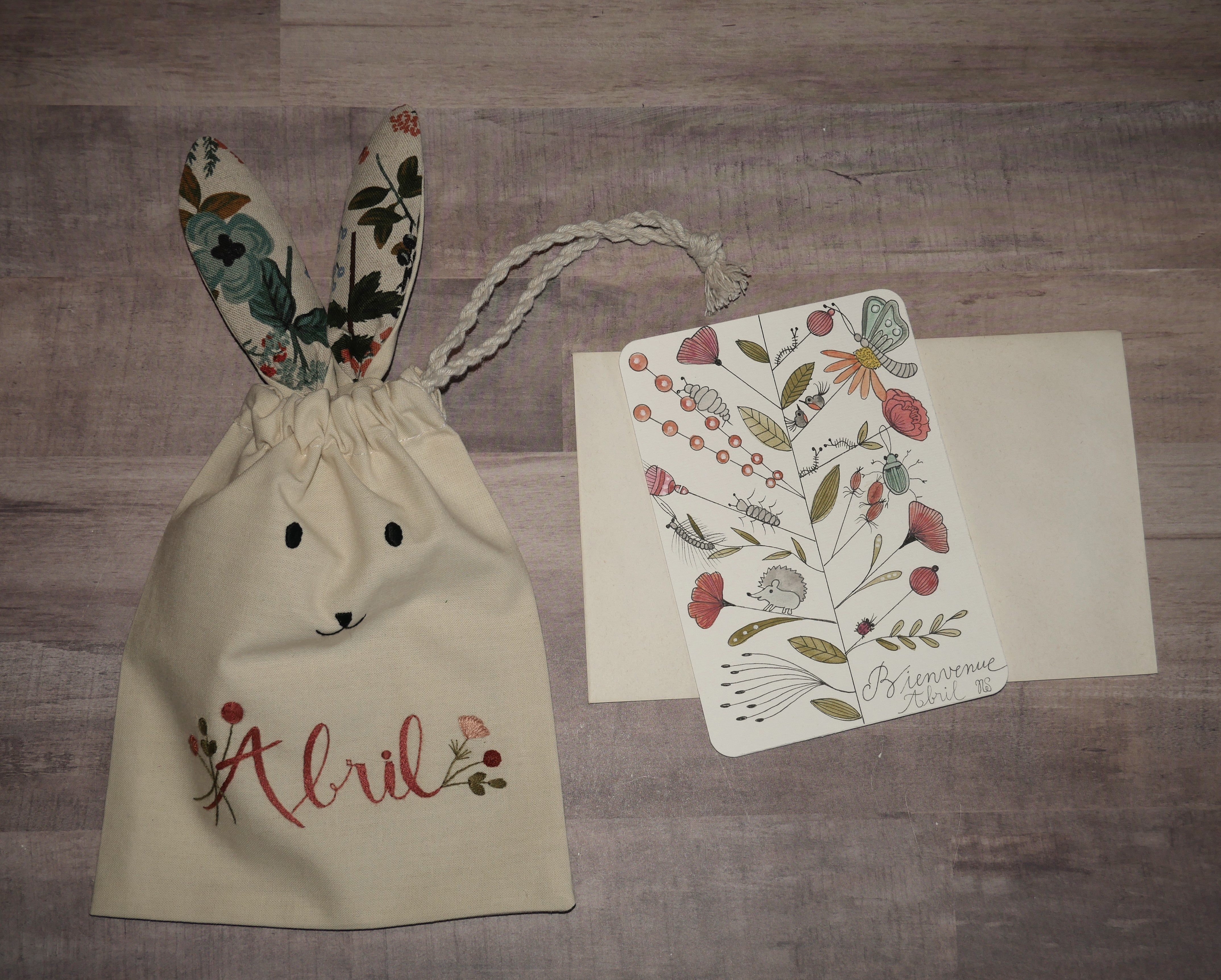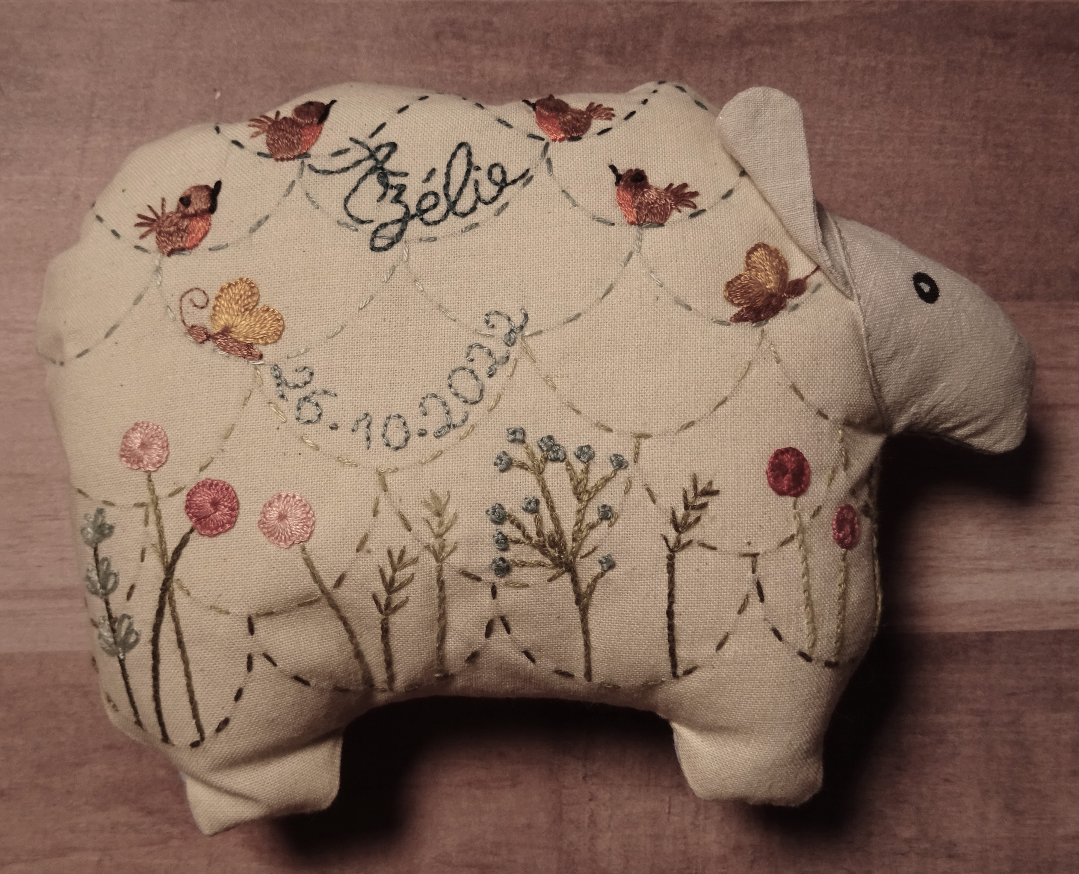 Trousse de charme, doudou mignon ou sujet de chiffon, coussin ou tapis rigolo, nid d’ange, sac à langer, protège carnet de santé, bavoir, album photo… Vous trouverez une multitude de cadeaux que je pourrai personnaliser au prénom de l’enfant et à sa date de naissance.